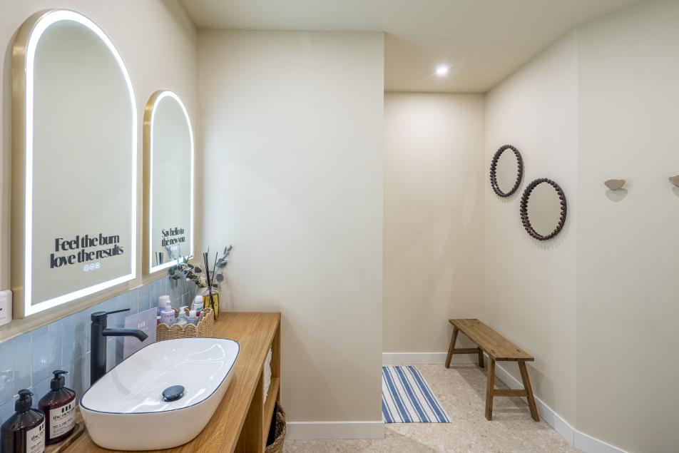 La conception du studio s'est appuyée sur une charte graphique définie par le groupe THE NEW ME, que nous avons déclinée dans l'espace afin de respecter pleinement leur identité.